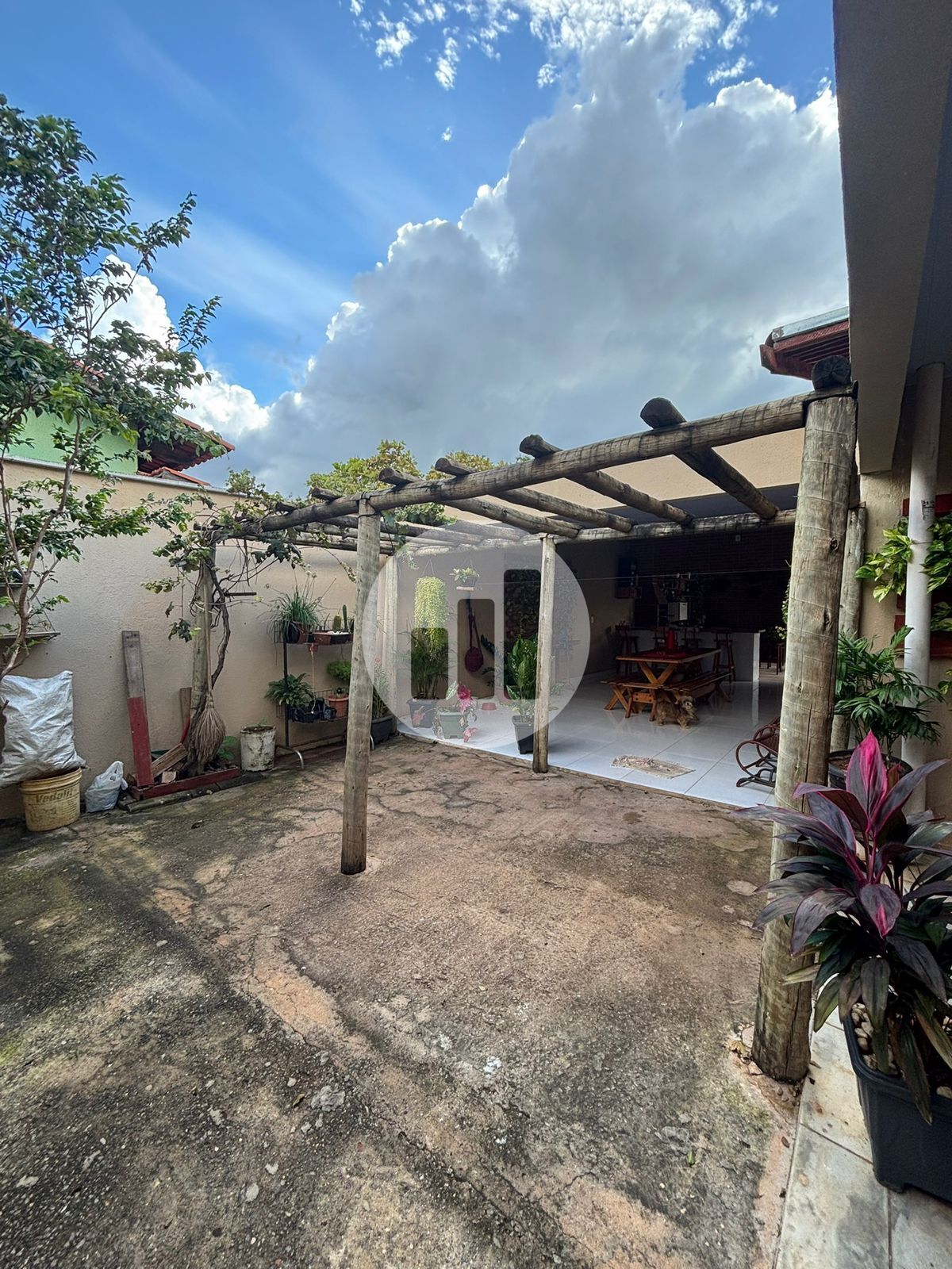 🌳 Área externa espaçosa, com paisagismo e diversas plantas, trazendo charme e aconchego